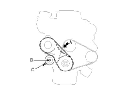 2. Turn the adjusting bolt(C) to obtain the proper belt tension, then retighten the mounting bolt(B).