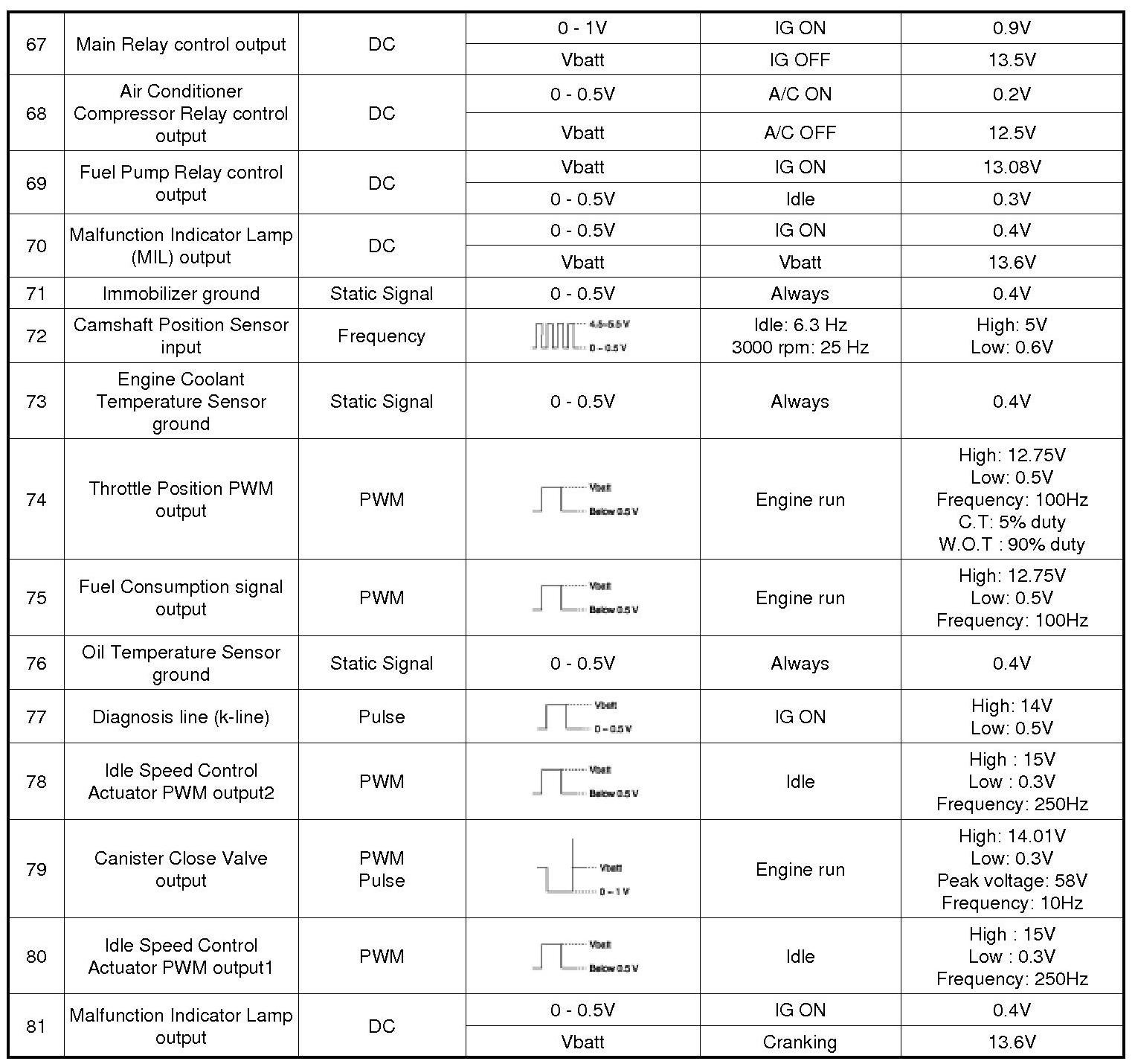 ECM TERMINAL INPUT/OUTPUT SIGNAL
