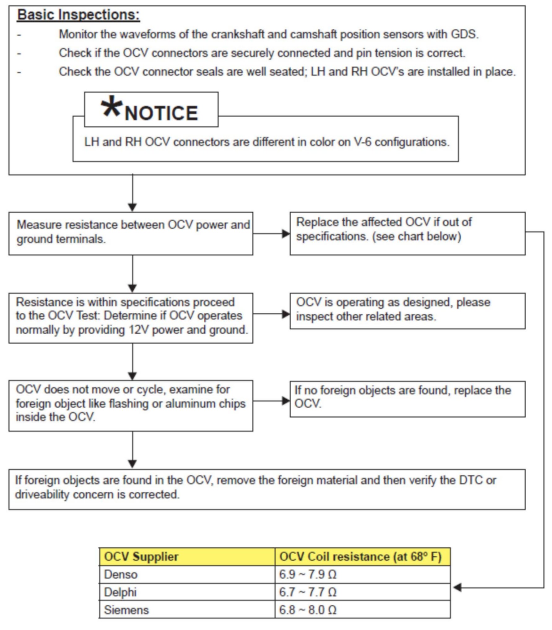 The OCV can be replaced for the following conditions: