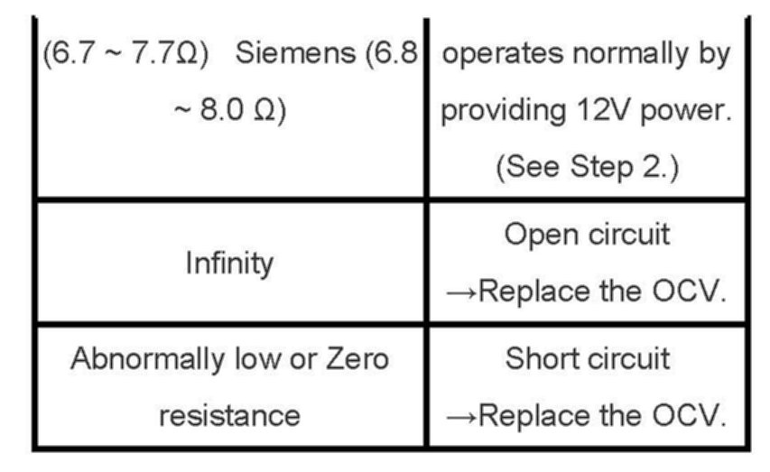 1. Measure the resistance between the OCV power and ground terminals.