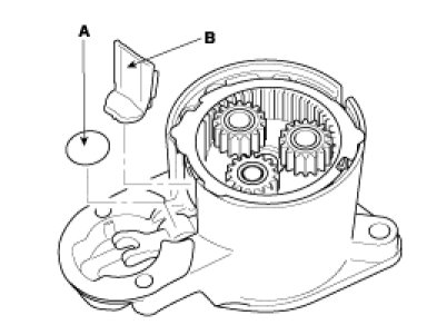 6. Remove the, lever plate (A) and planetary shaft packing (B).