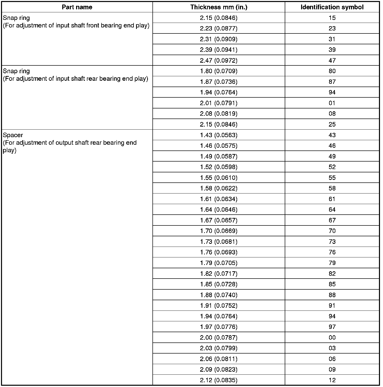 SNAP RING FOR ADJUSTMENT AND SPACER