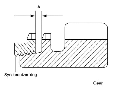 3. Push the synchronizer ring toward the clutch gear and check clearance "A". Replace if it is not within specifications.