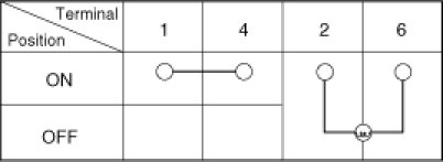 3. Using an ohmmeter, inspection the continuity between the terminals after removing to the switch connector.