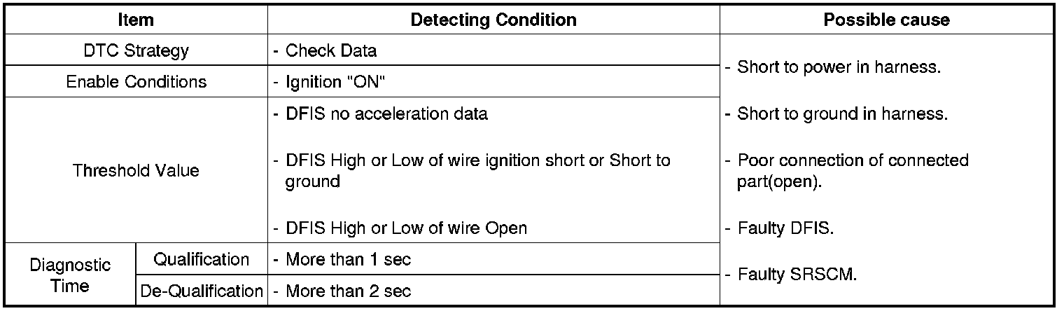The SRSCM sets DTC B1329 if there is any error in communication between DFIS and SRSCM