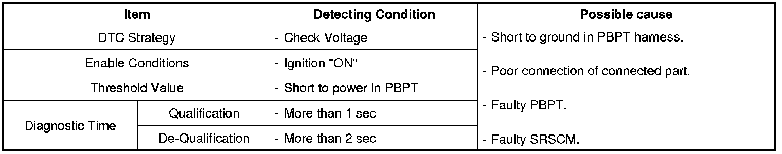 The SRSCM sets DTC B1370 if there is a short to power in PBPT harness.