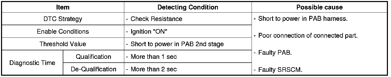 The SRSCM sets DTC B1488 if there is a short to power in PAB harness.