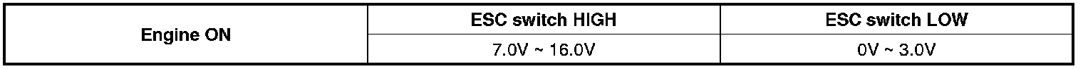 Trouble code is set when the condition that the level of ESC switch is high is continued for 60 sec.