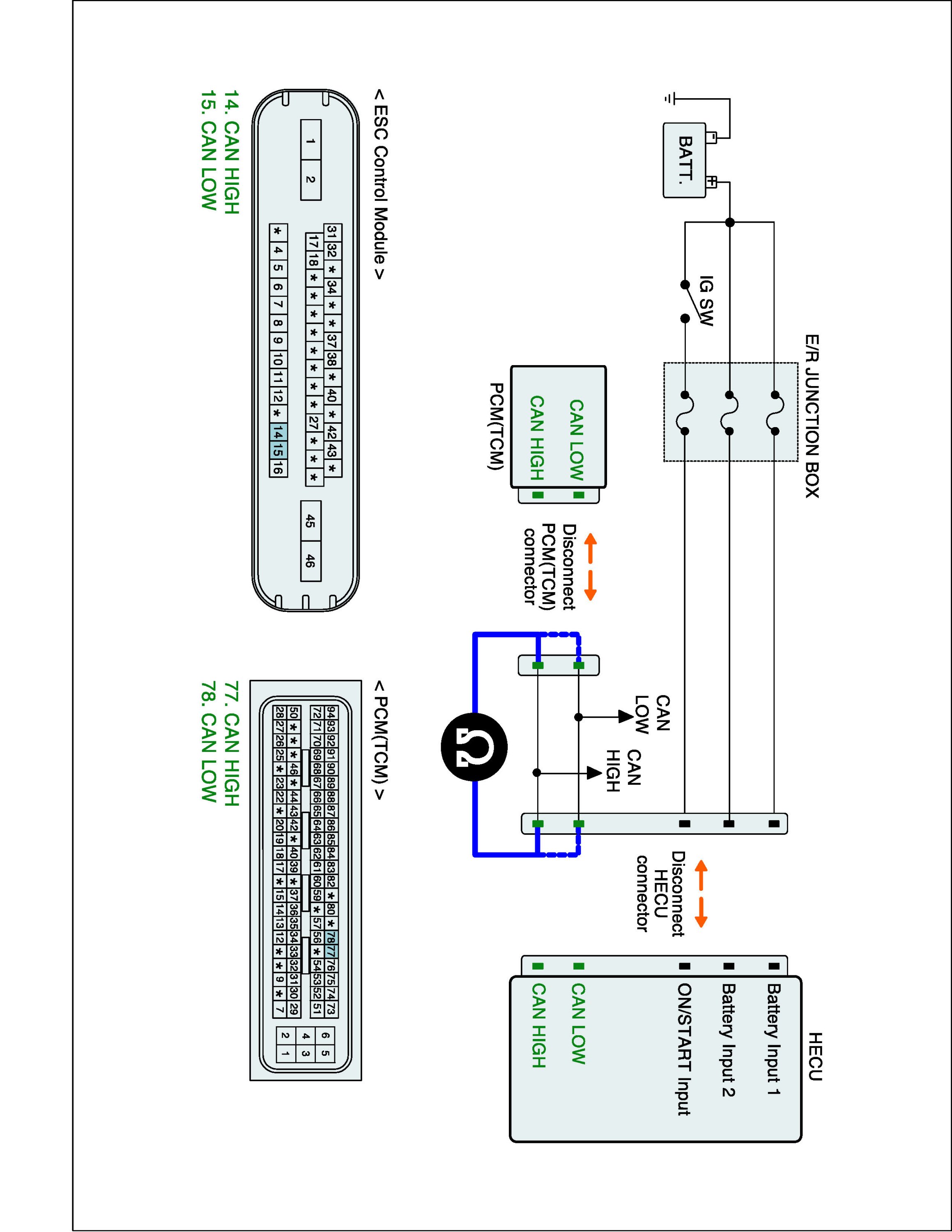 2. Disconnect HECU and TCM connector.