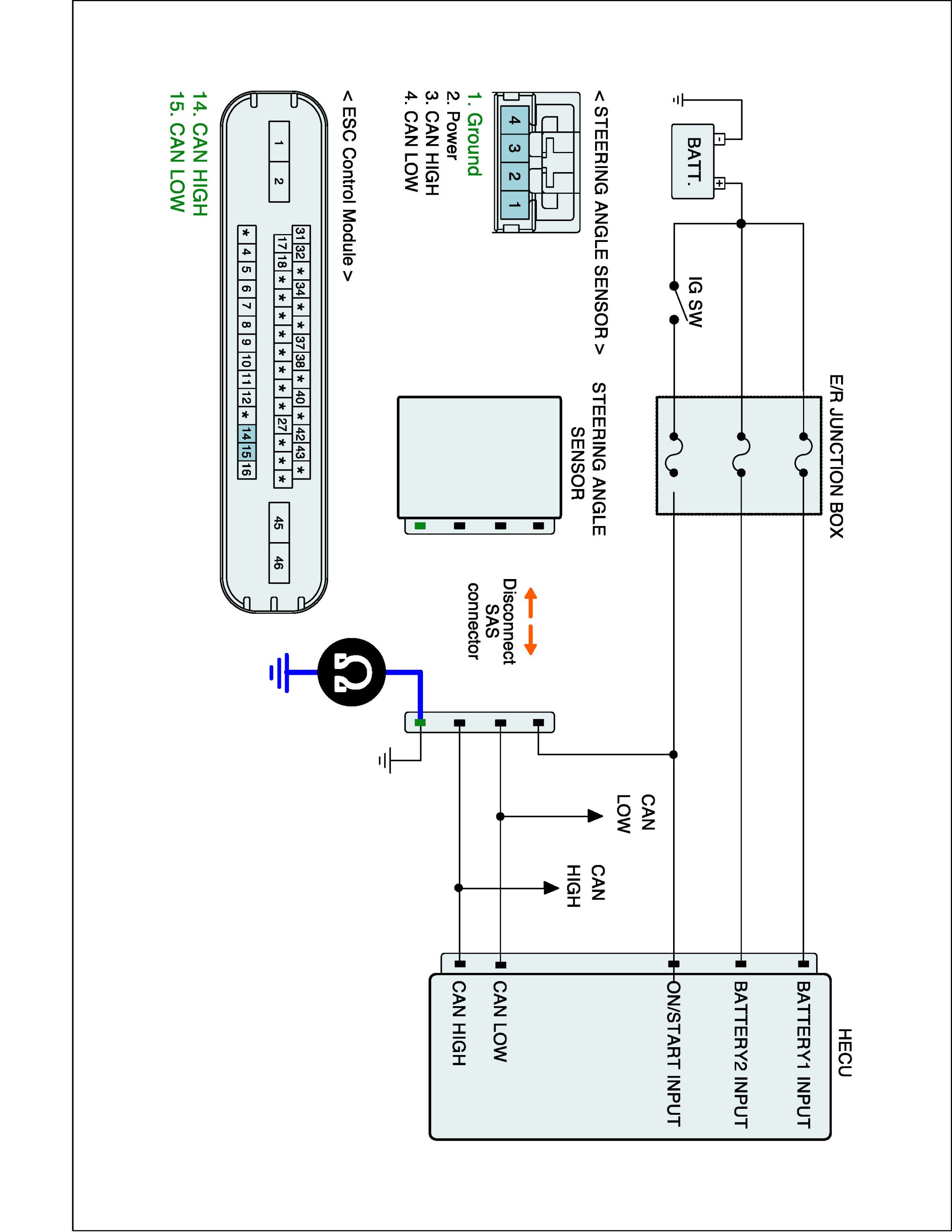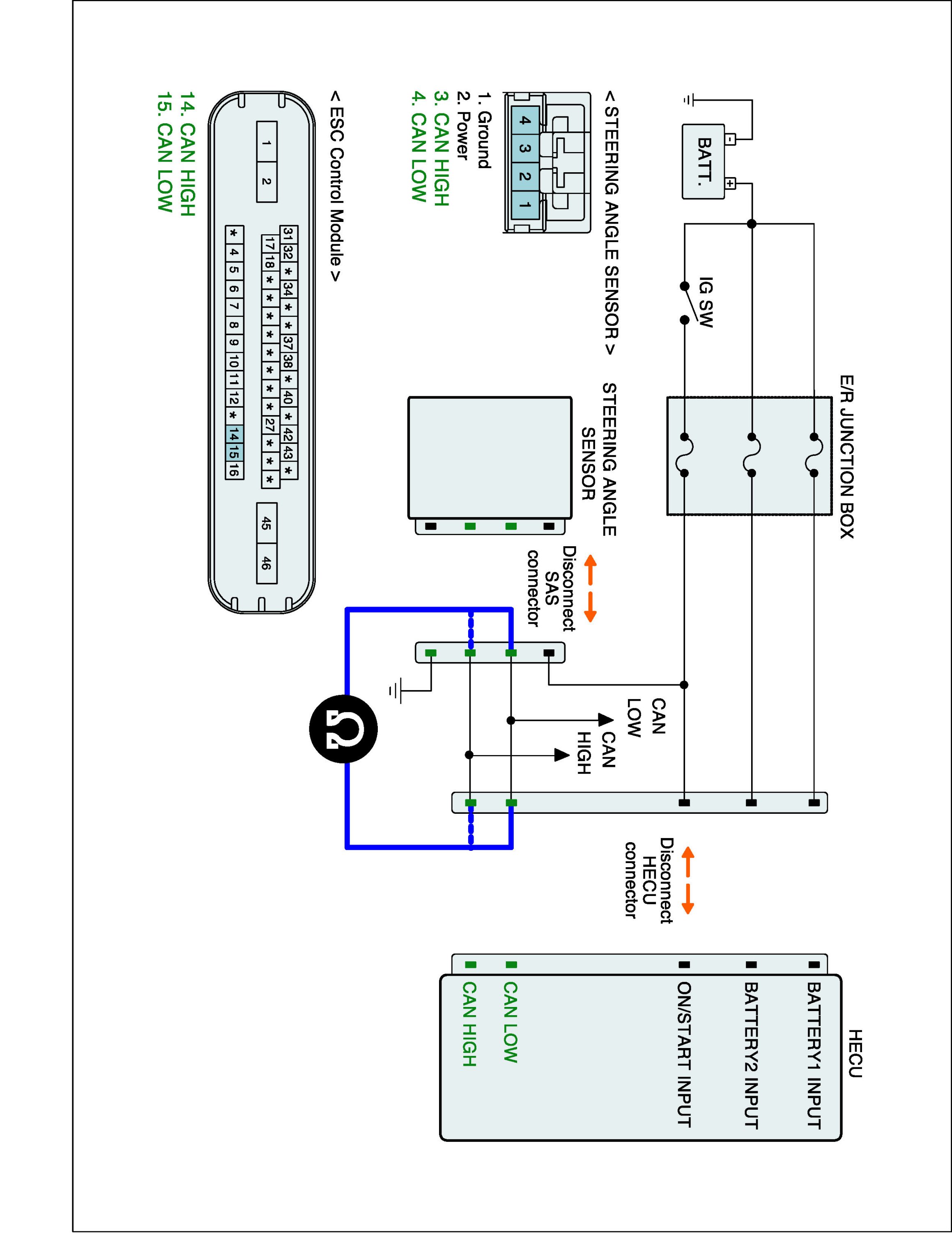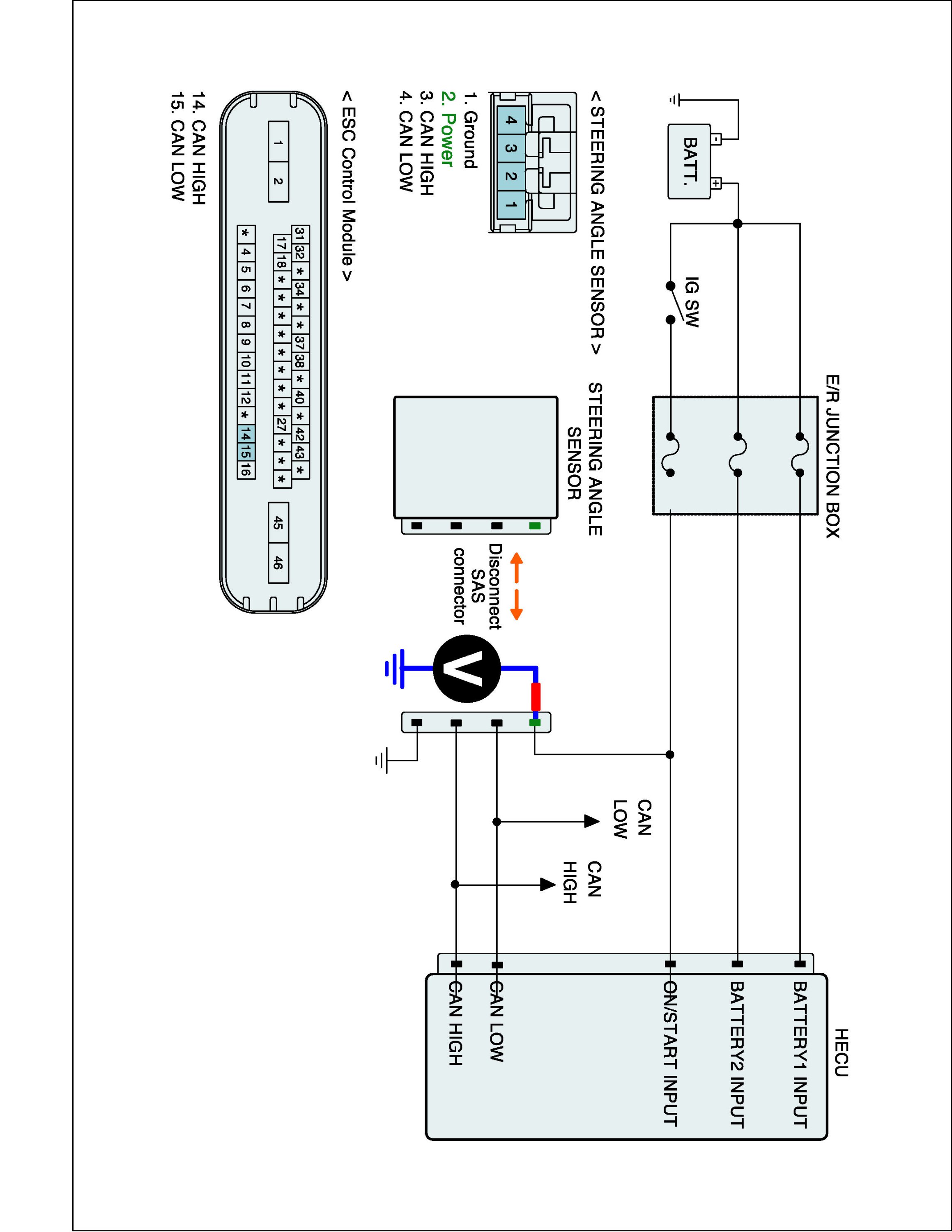 2. Disconnect Steering Angle Sensor connector and HECU connector.