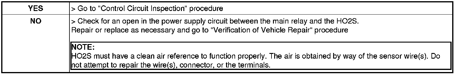 1. Measure voltage between control terminal of HO2S (B1/S1) heater harness connector and chassis ground.