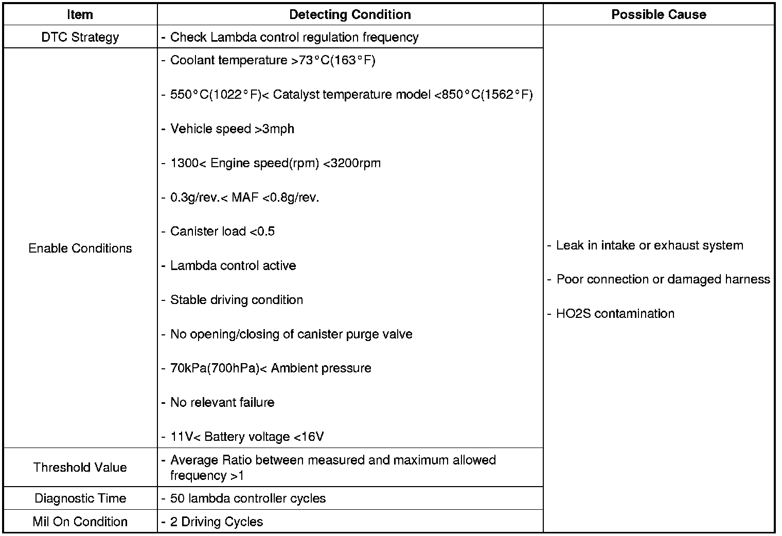 DTC Detecting Condition