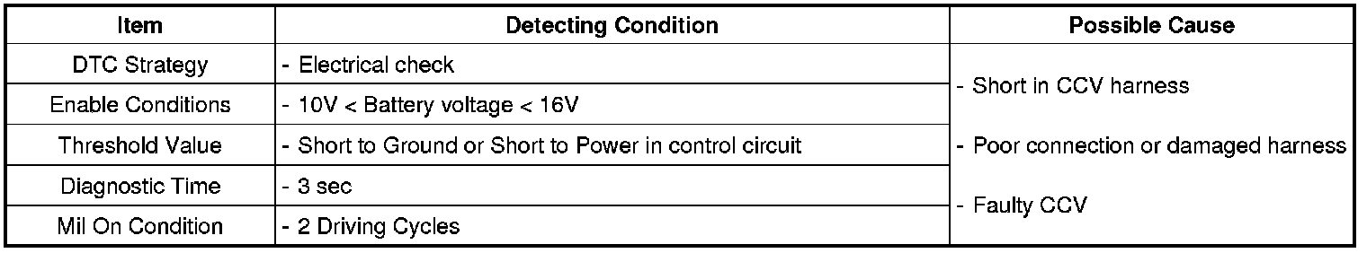 PCM sets DTC P0448 if the PCM detects that the CCV control line is short to ground or short to battery line.