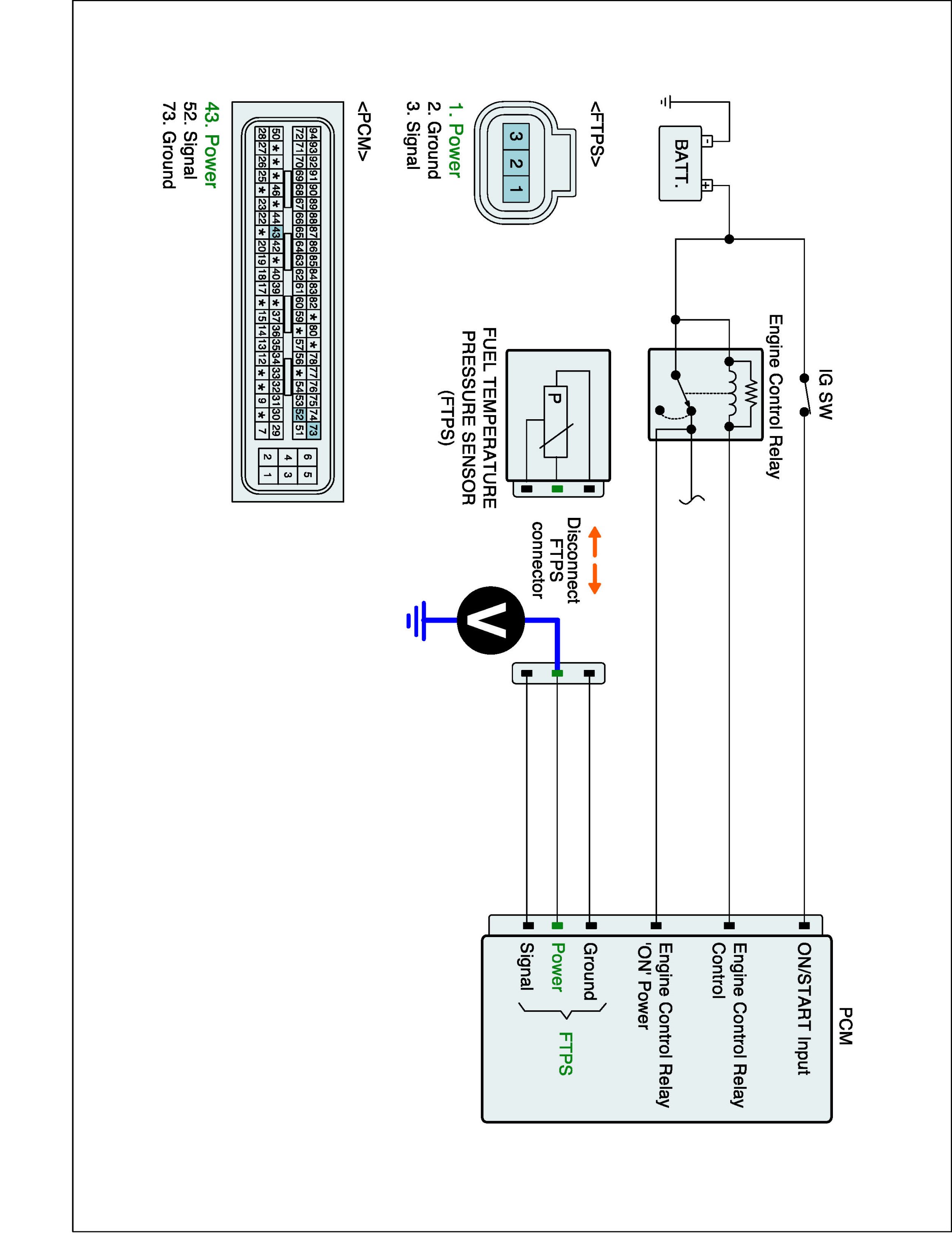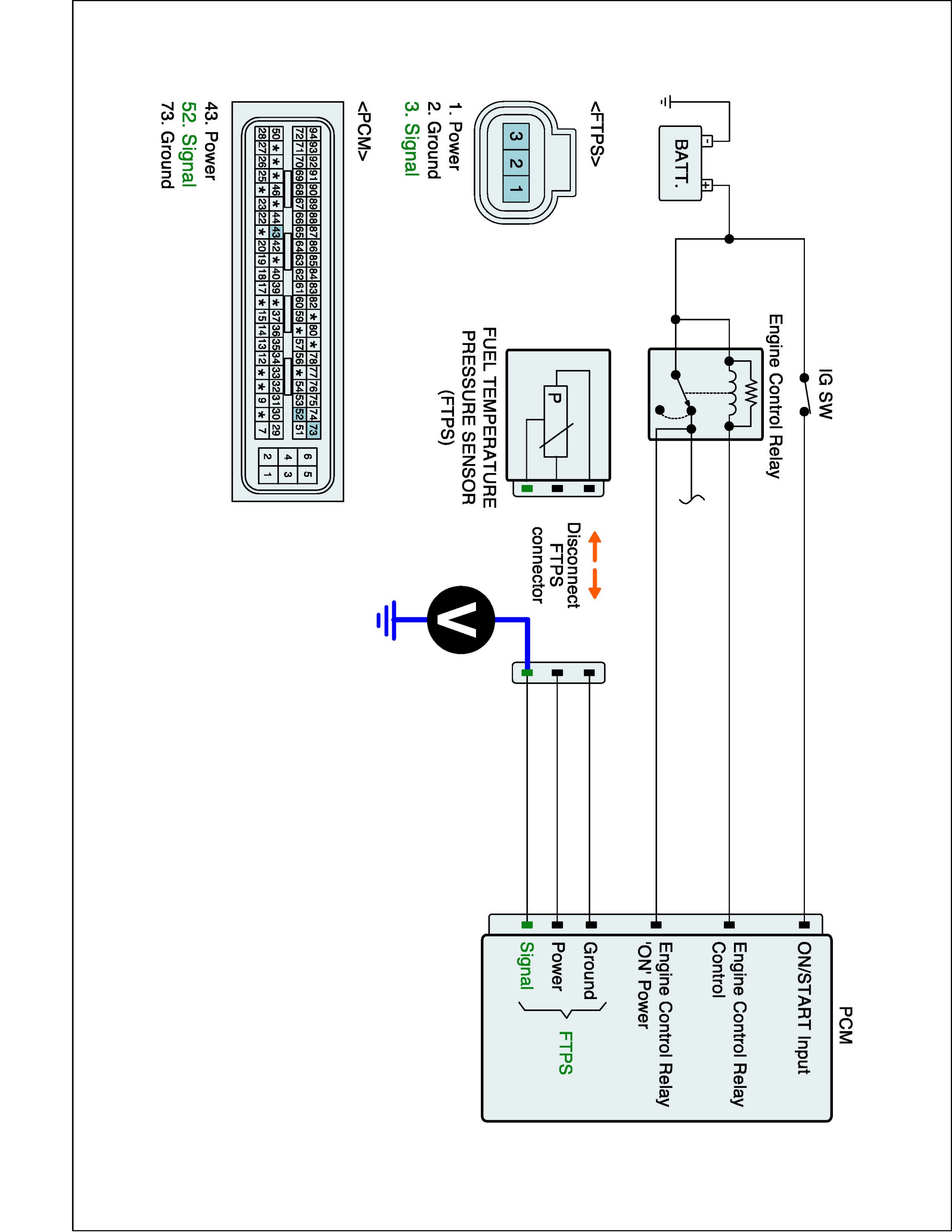 4. Measure voltage between signal terminal of FTPS harness connector and chassis ground.