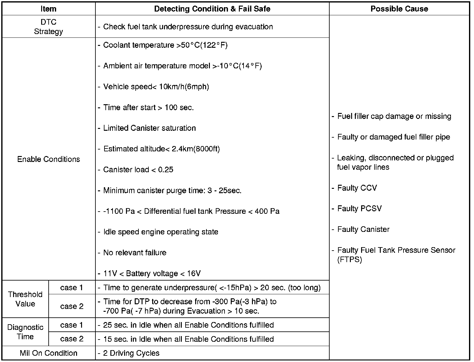 DTC Detecting Condition
