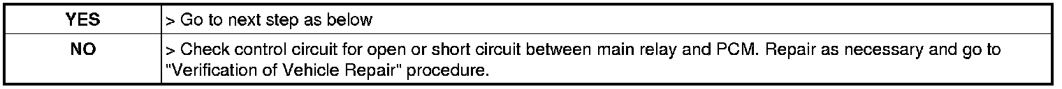 2. With PCM connector disconnected, measure voltage between main relay control terminal of the PCM harness connector and chassis ground.