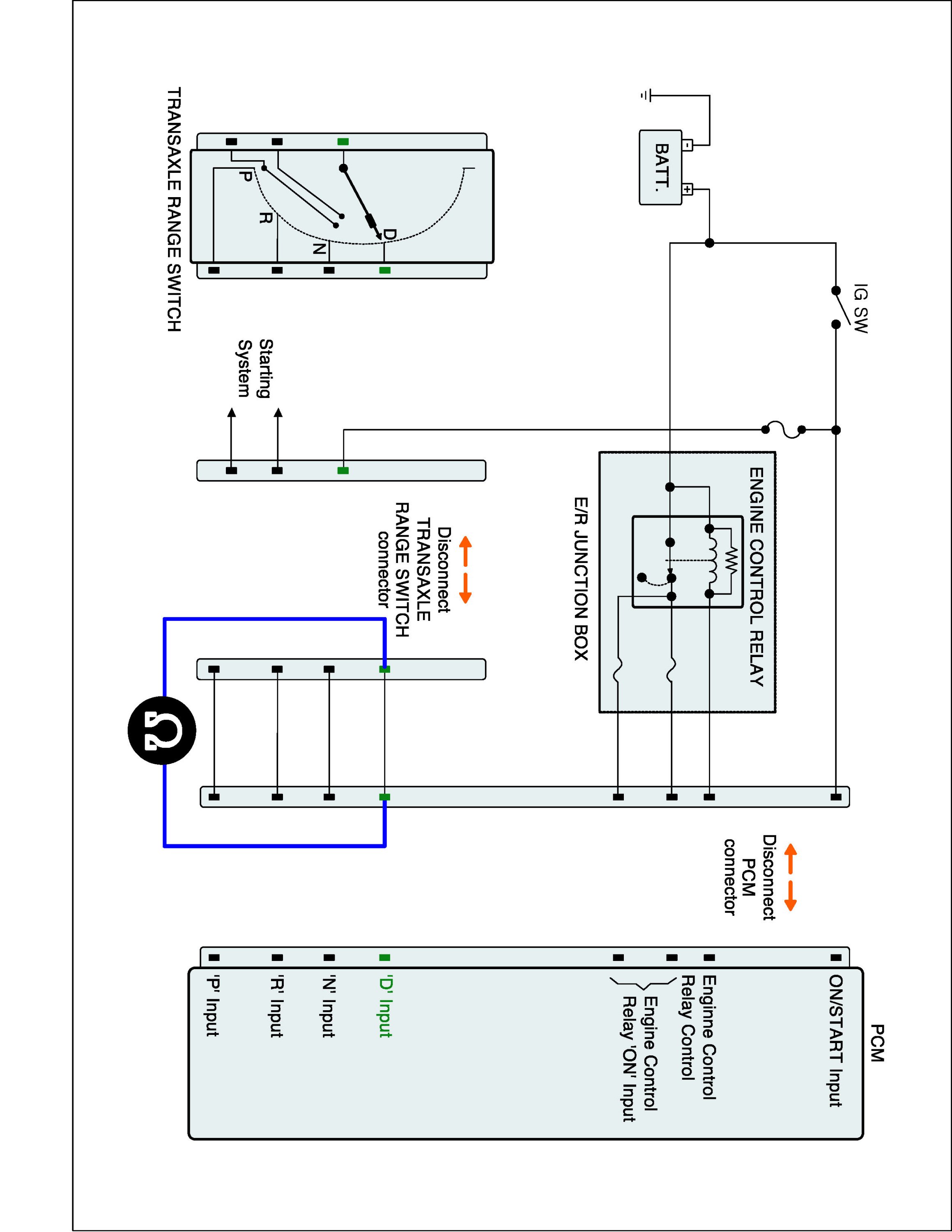 2. Disconnect "TRANSAXLE RANGE SWITCH" and "TCM (PCM)" connector.