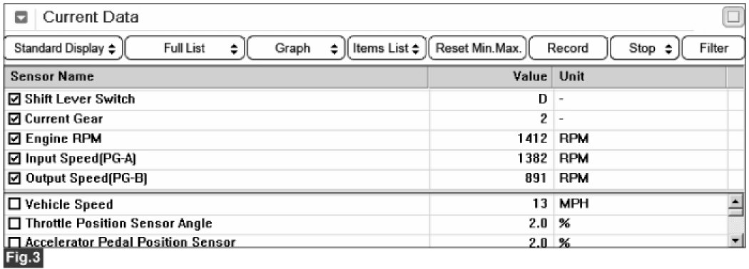 3. Monitor the "INPUT SPEED SENSOR" parameter on the GDS.