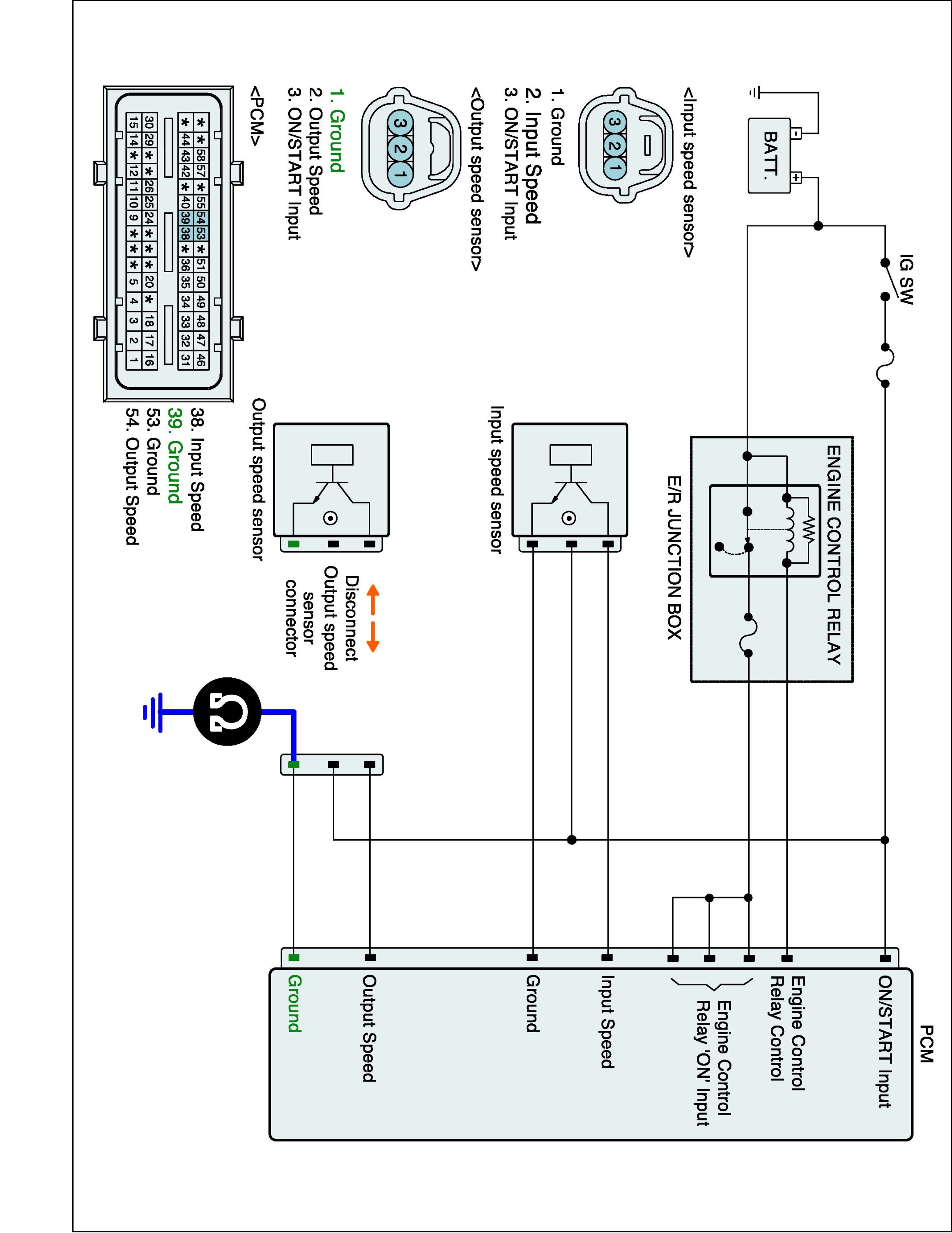 3. Measure resistance between "Ground" terminal of the OUTPUT SPEED SENSOR harness connector and chassis ground.
