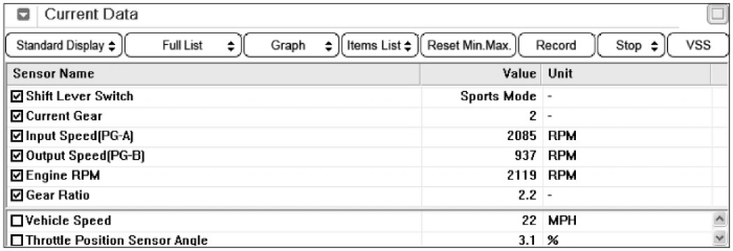 3. Monitor the "INPUT & OUTPUT SPEED SENSOR" parameter on the scantool.