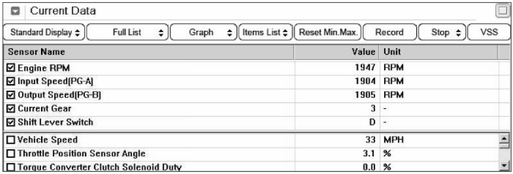 3. Monitor the "INPUT & OUTPUT SPEED SENSOR" parameter on the scantool.