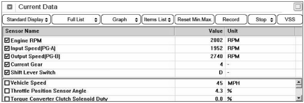 3. Monitor the "INPUT & OUTPUT SPEED SENSOR" parameter on the scantool.