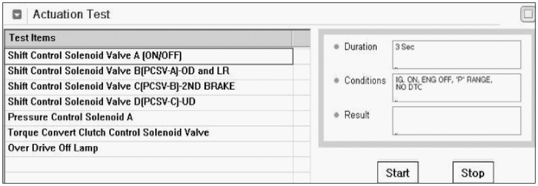 (3) Select A/T Solenoid valve Actuator test and Operate Actuator test.