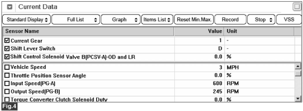 Fig 3) "D Range 1st" gear,VEHICLE SPEED=0