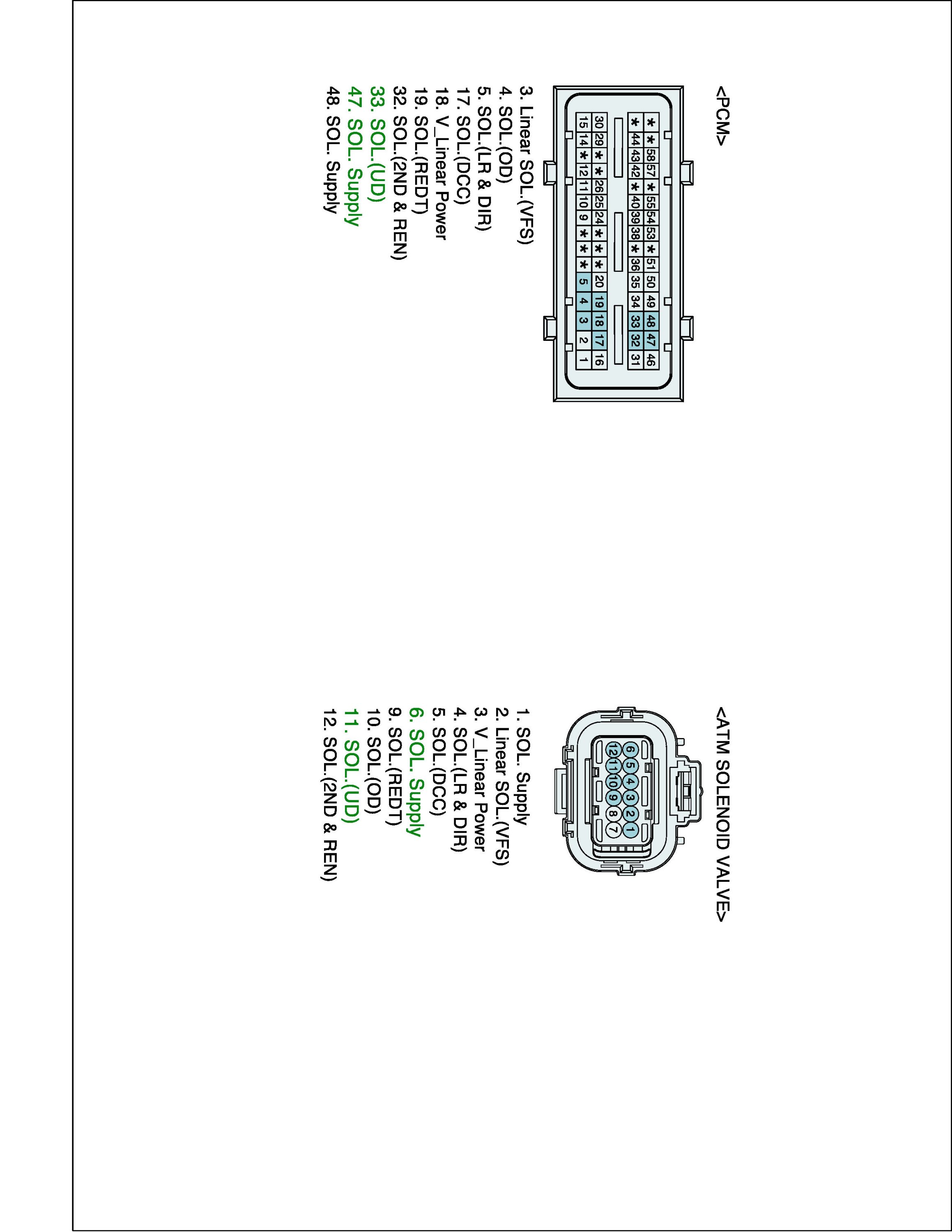 (3) Measure resistance between "UD SOLENOID" terminal and "Power" terminal of the ATM SOLENOID VALVE harness connector.