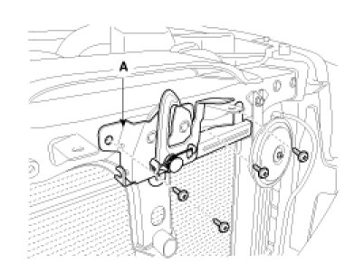 2. Remove the hood latch (A) mounting bolts.