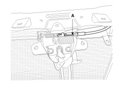 3. Disconnect the hood latch cable (A) and remove the latch.