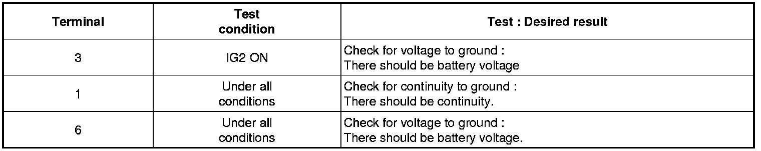 5. Ground the terminals as below table, and check that the sunroof unit operates as below table.