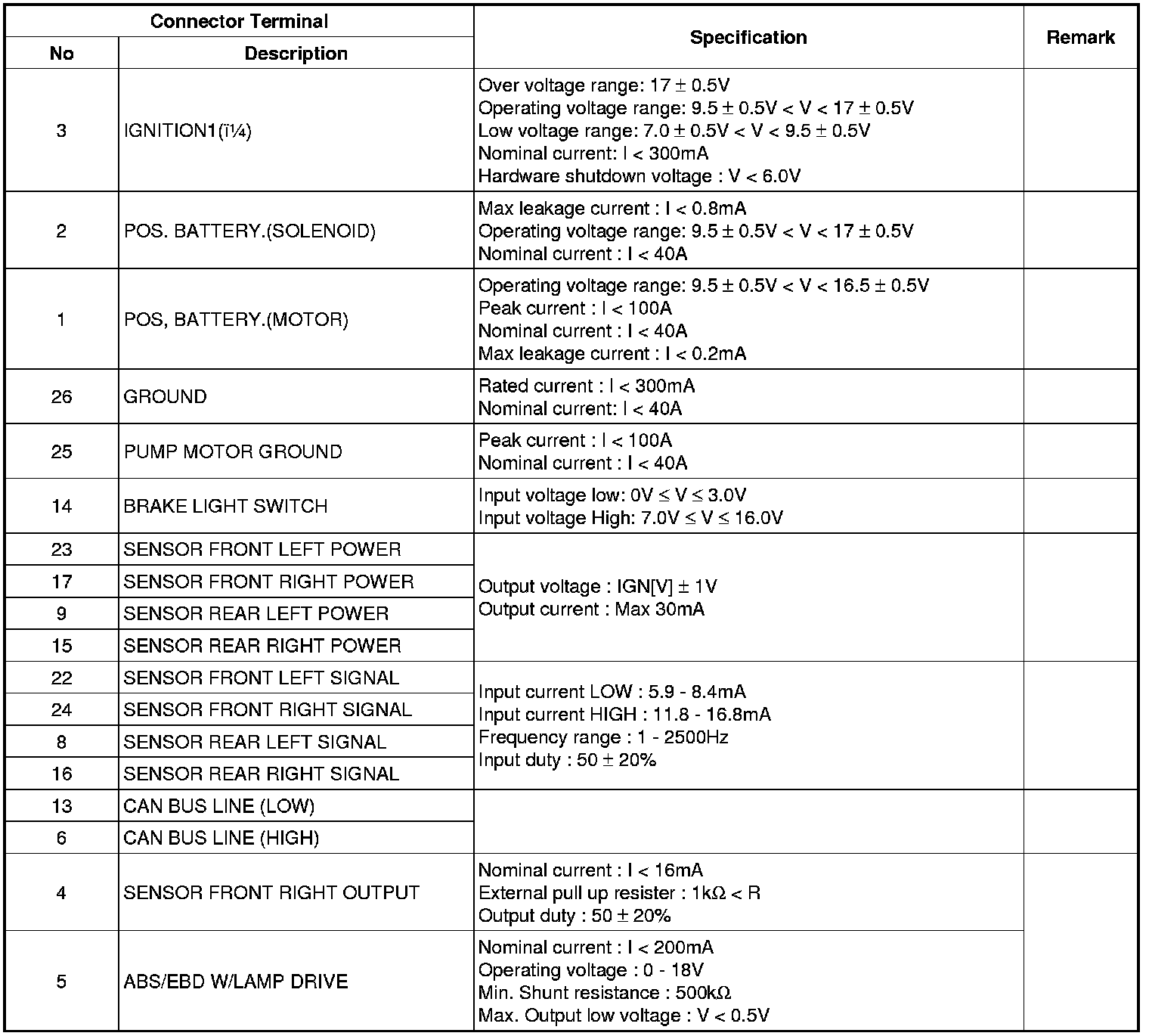Pinout Values and Diagnostic Parameters