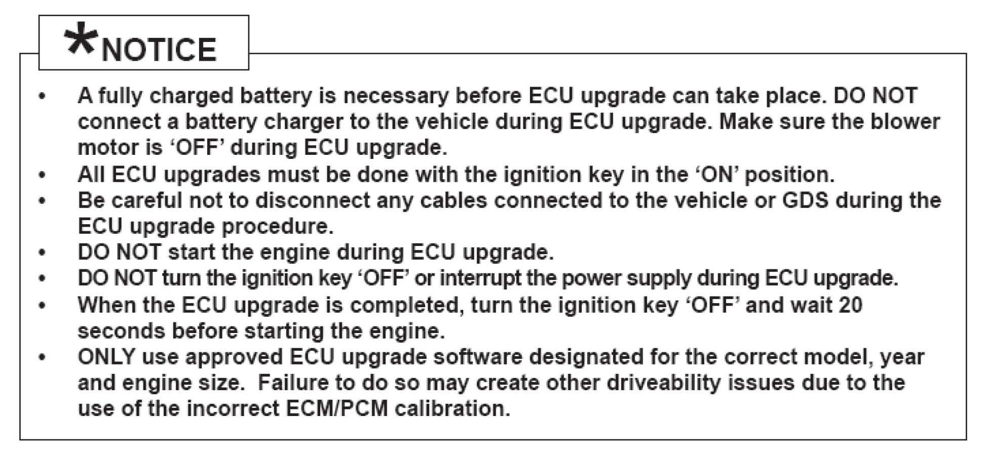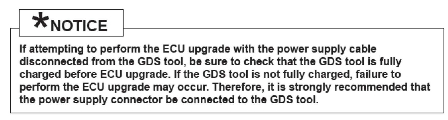 7. When the GDS tool reports that the ECM upgrade has been successfully completed, click OK, turn OFF the ignition key, and wait at least 10 seconds before attempting to start the engine.