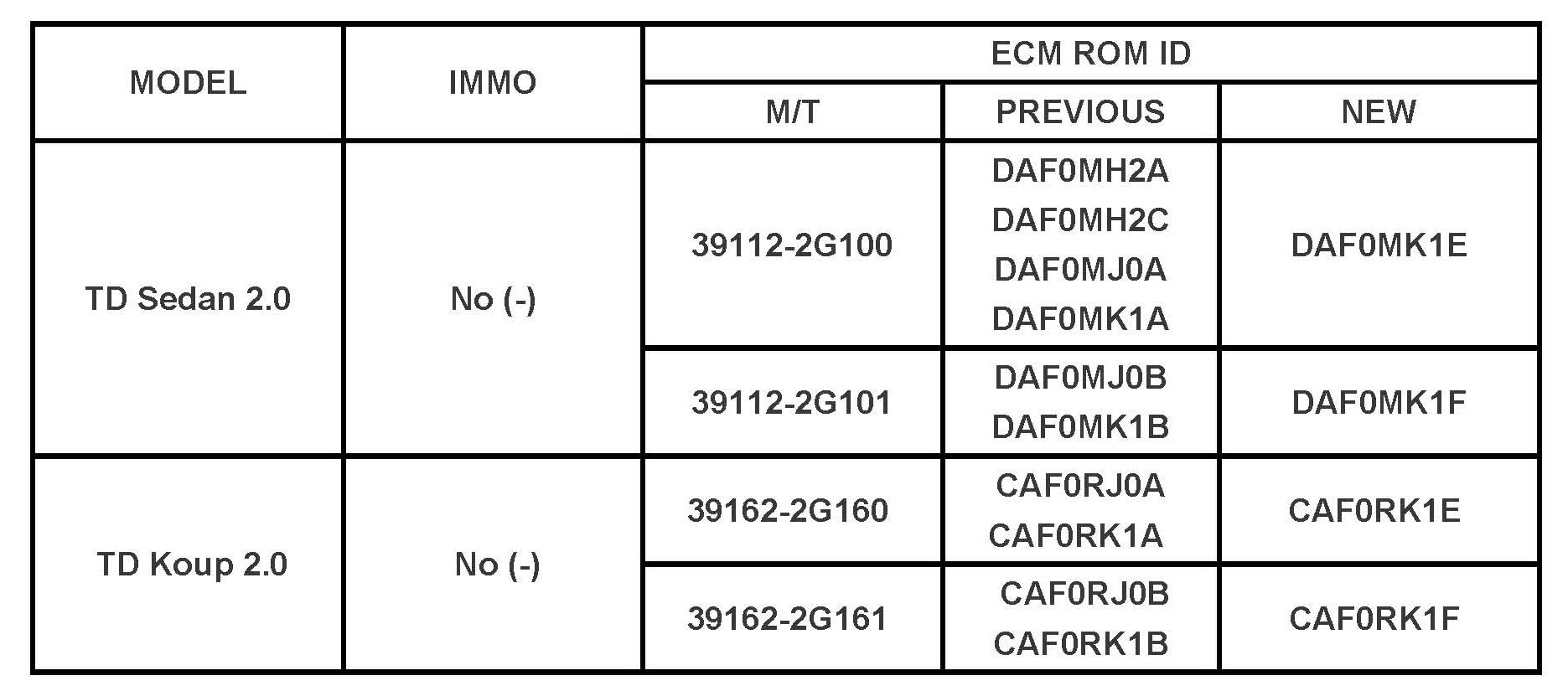 - To verify the vehicle is affected, be sure to check the Calibration Identification of the vehicle's ECM's ROM ID and reference the Information Table as necessary.