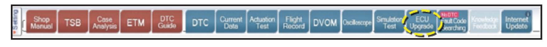 6. Once back at the GDS Main Screen, select ECM upgrade from the bottom right-hand corner. Next select Auto Mode, Engine.