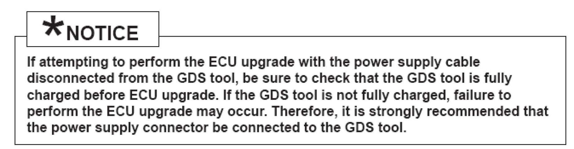 7. When the GDS tool reports that the ECM upgrade has been successfully completed, click OK, turn OFF the ignition key, and wait at least 10 seconds before attempting to start the engine.