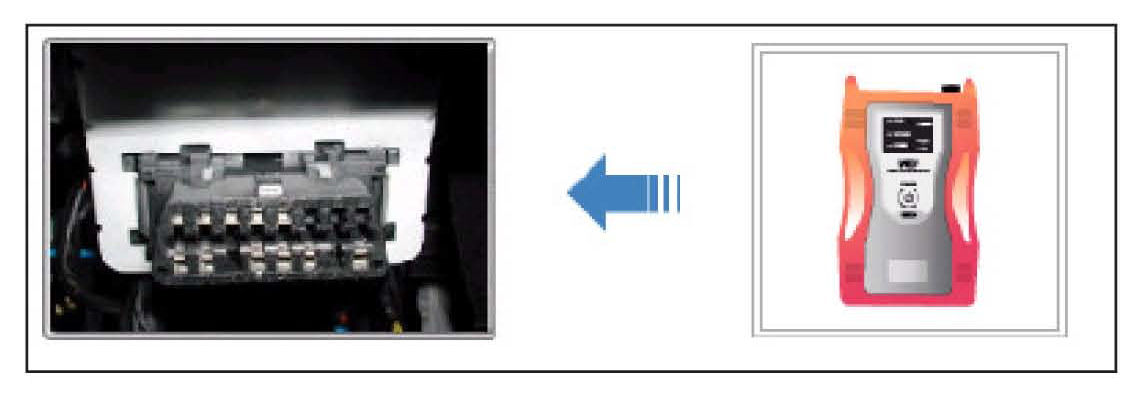 4. Connect the Main 16-pin DLC cable (GHDM - 241000) to the OBD-II connector, located under the driver's side of the instrument panel.