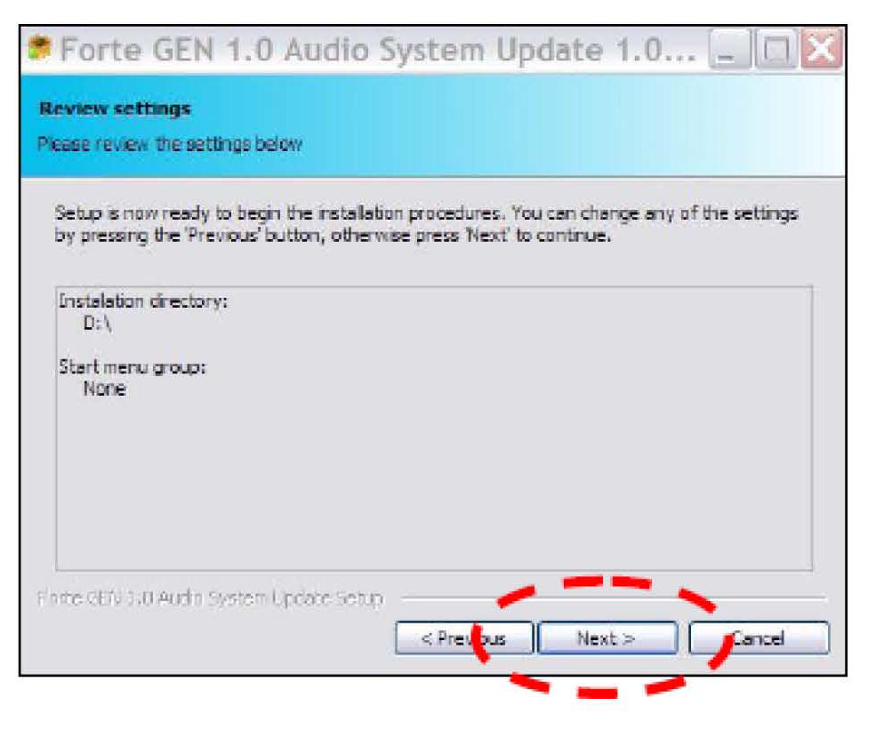 10. Review your settings, and then Click "Next" to begin