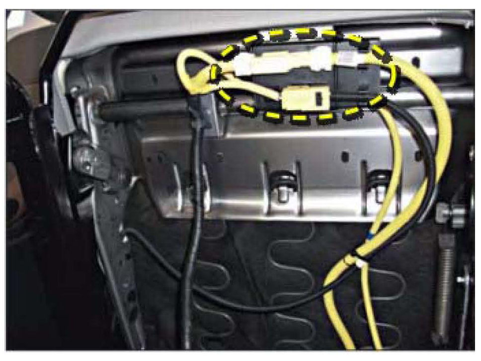 10. Verify all the harnesses and connectors are properly routed and secured and that the connector mounting bracket is securely attached to seat frame.