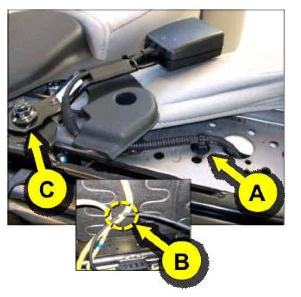 ^ Route harness through correct hole in seat frame.