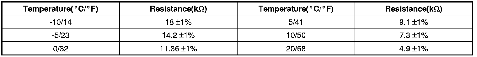 Fig.1) ** Specifications : Resistance value of Evaporator sensor as a function of temperature.
