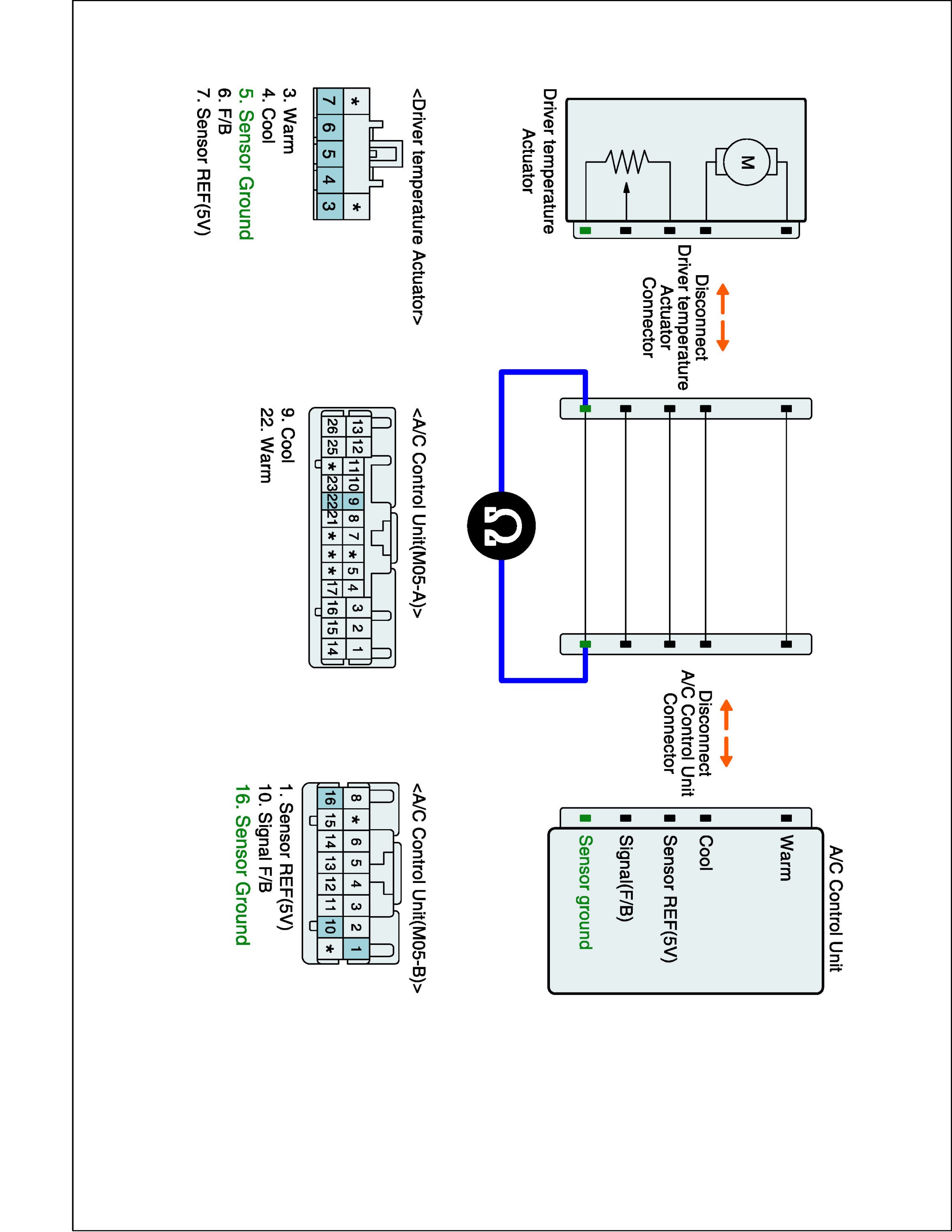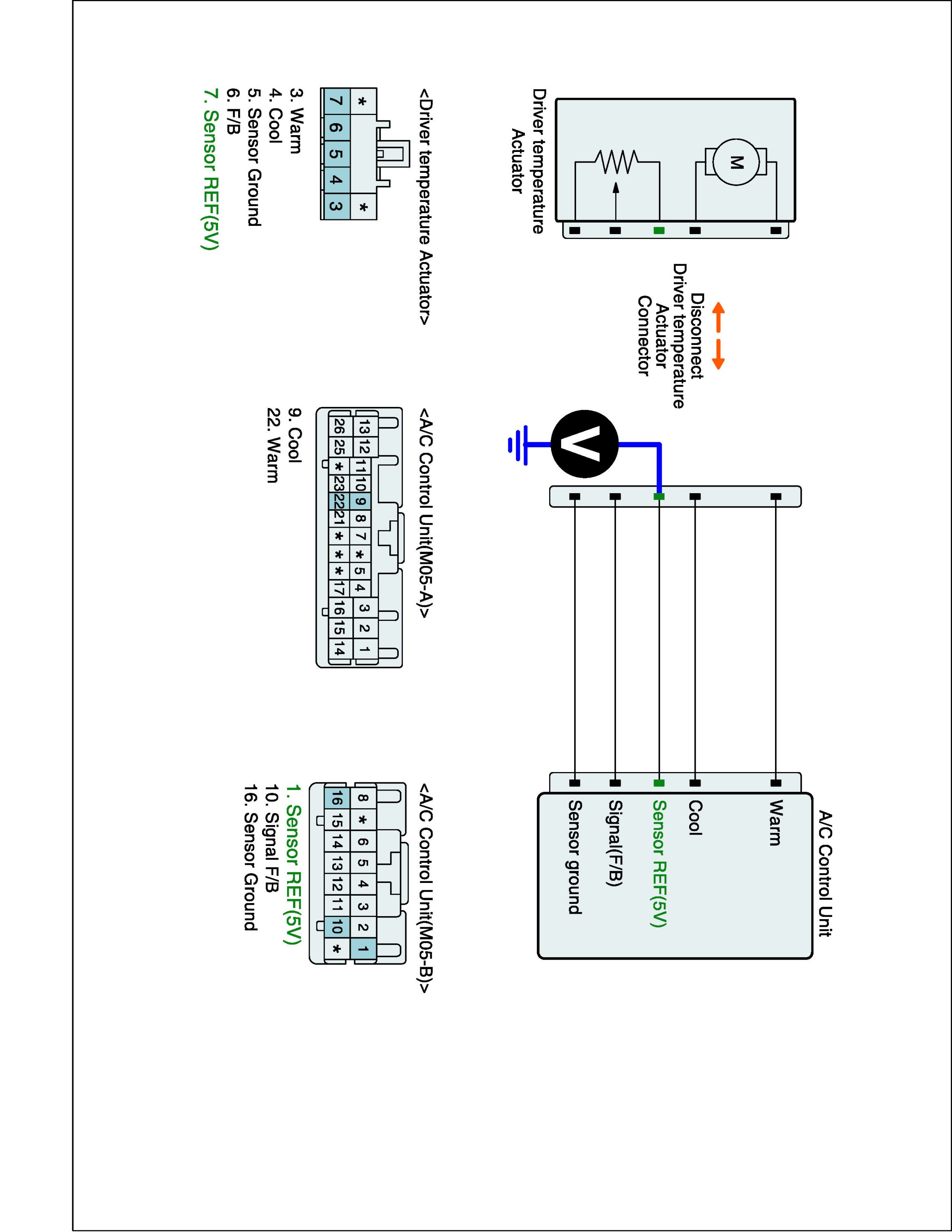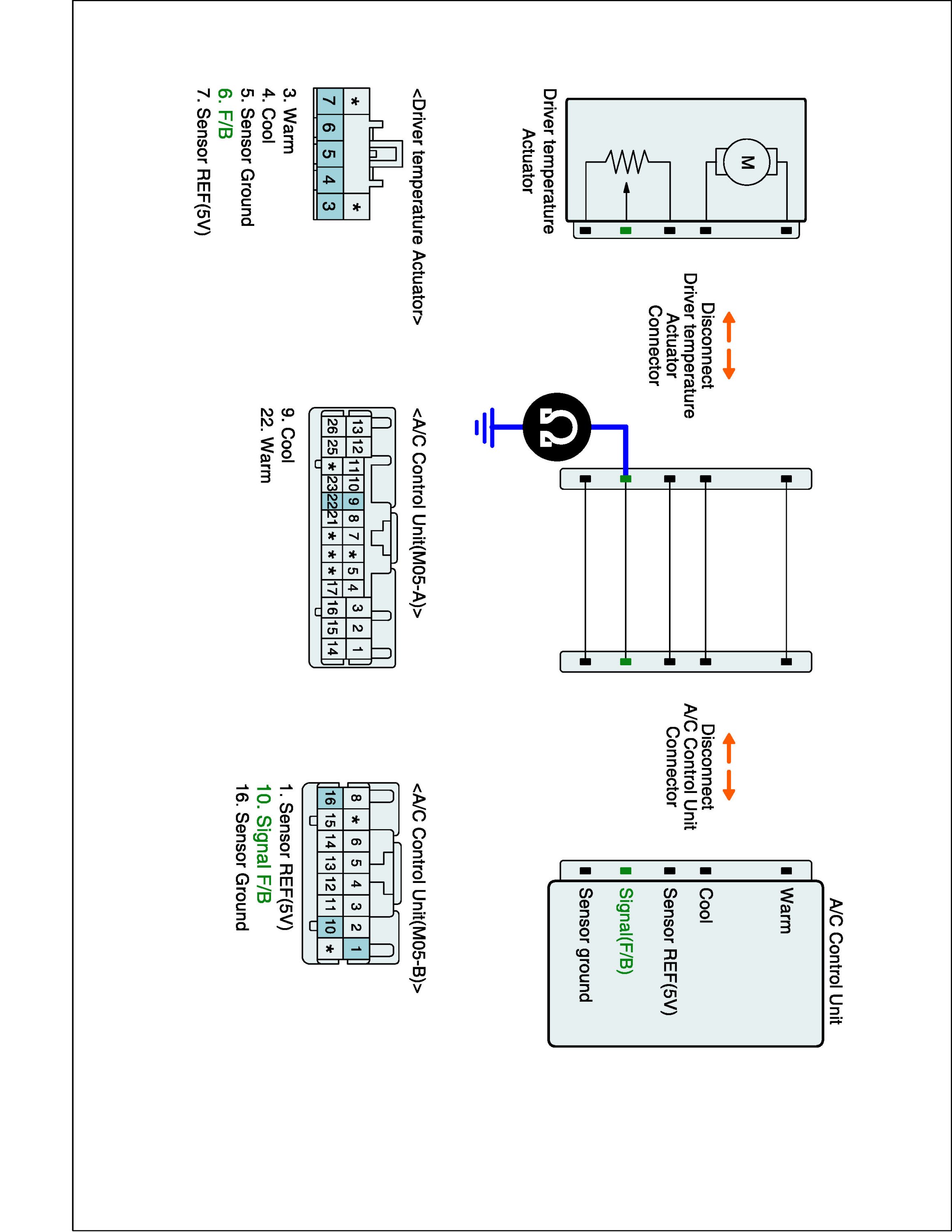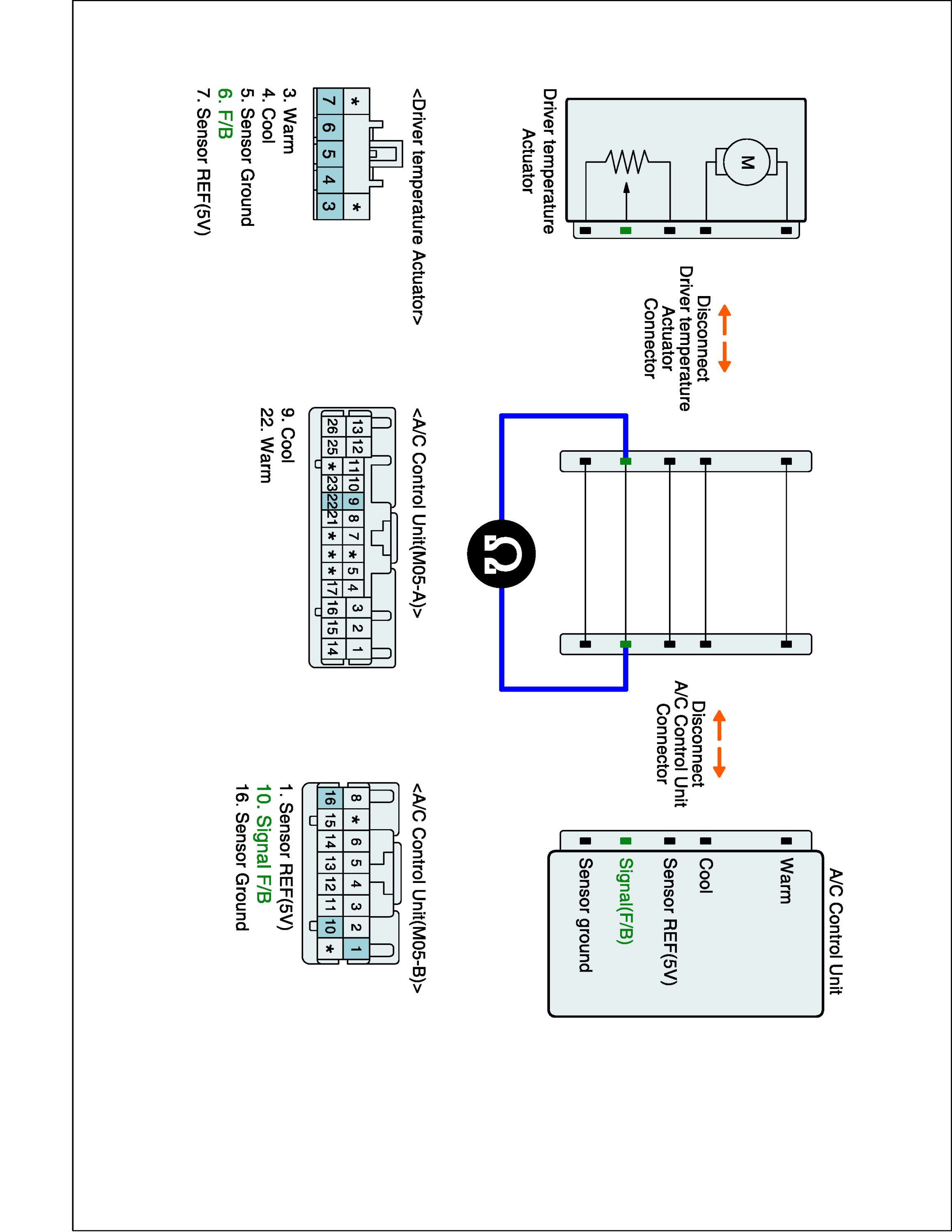 2. Disconnect Driver air mix actuator and Connect A/C control unit main harness connector.