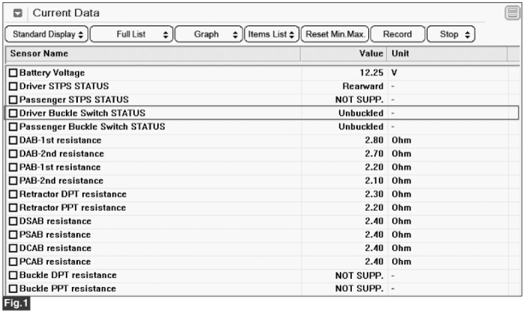 3. Monitor the "Driver Buckle Switch status" parameter on the Scantool.