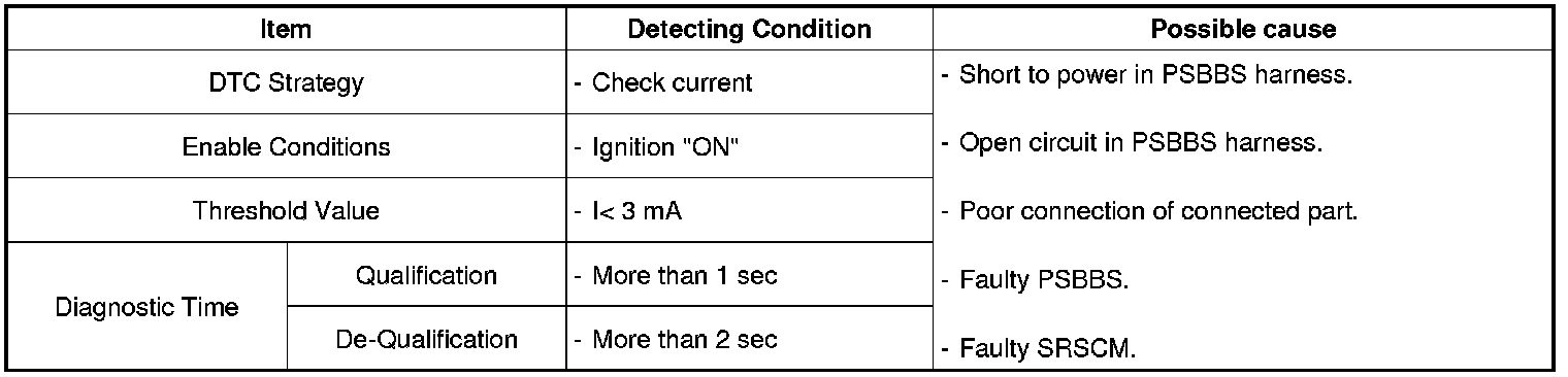The SRSCM sets DTC B1513 if there is a open circuit or short to power in PSBBS harness.