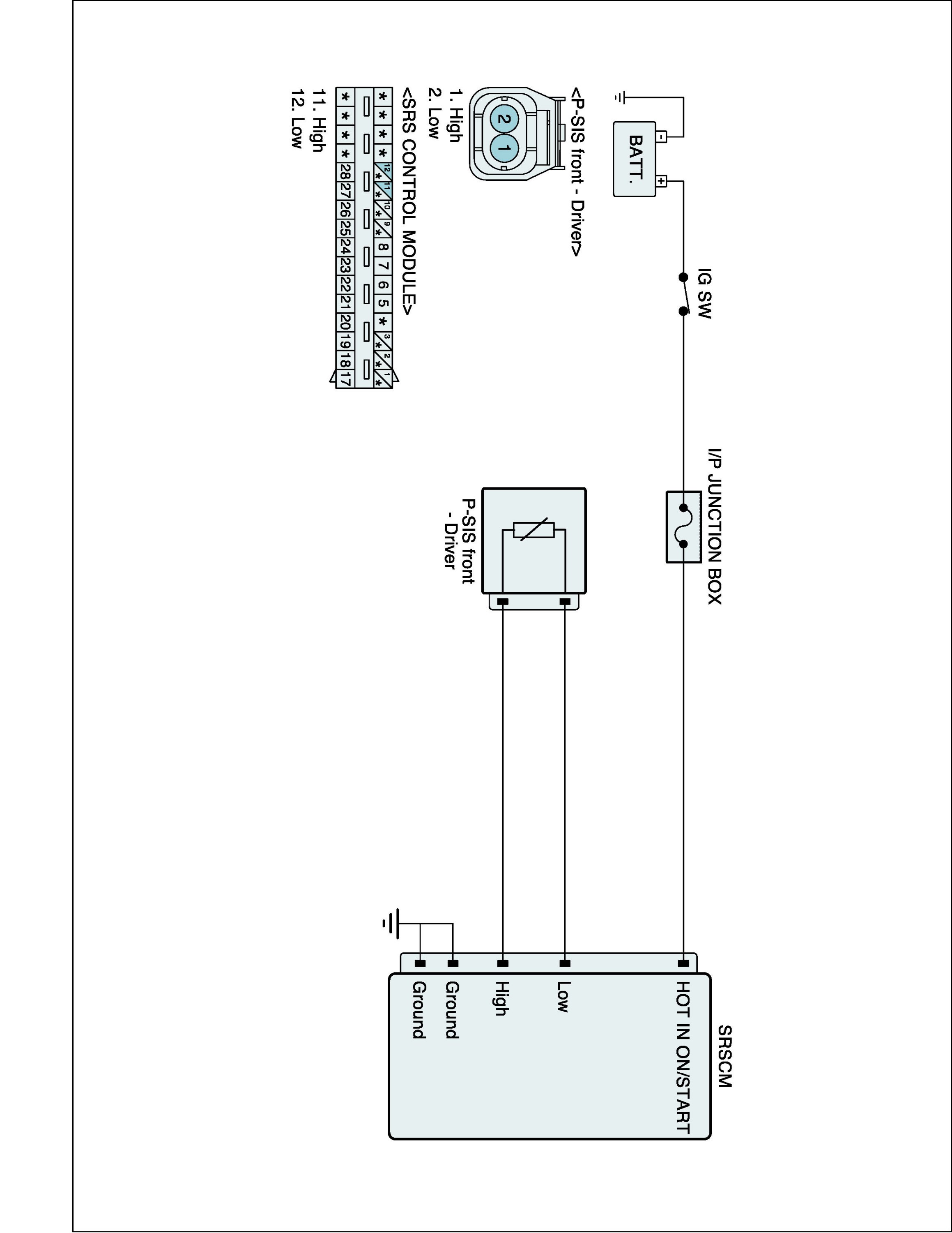 The SCM detects the impact signals of the Pressure-Side Impact Sensor and Side Impact Sensor and compares with signals of the safe sensor inside. If the signals of all sensors are judged as a collision, the side-airbag and the curtain-airbag would be unfolded.