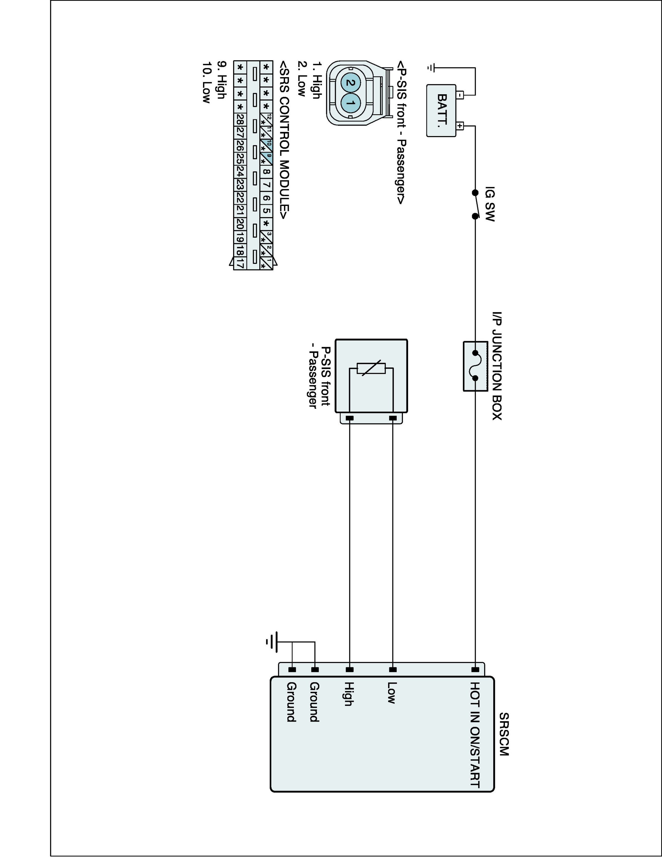 The SCM detects the impact signals of the Pressure-Side Impact Sensor and Side Impact Sensor and compares with signals of the safe sensor inside. If the signals of all sensors are judged as a collision, the side-airbag and the curtain-airbag would be unfolded.