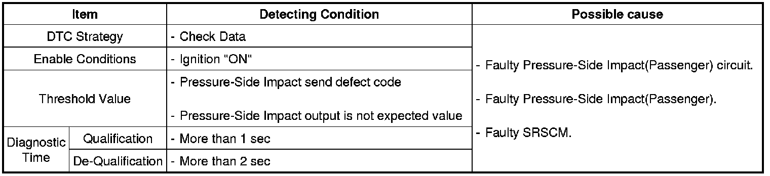 The SRSCM sets DTC B1745 if there is any fault in Pressure-Side Impact (Passenger) circuit.