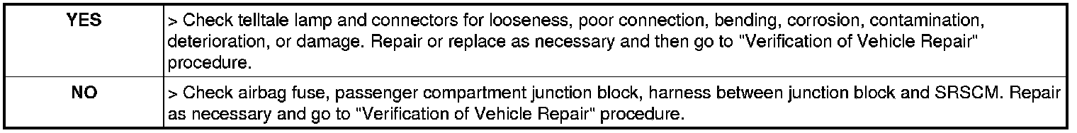 5. Measure voltage between Telltale lamp terminal of the SRSCM harness connector and chassis ground.