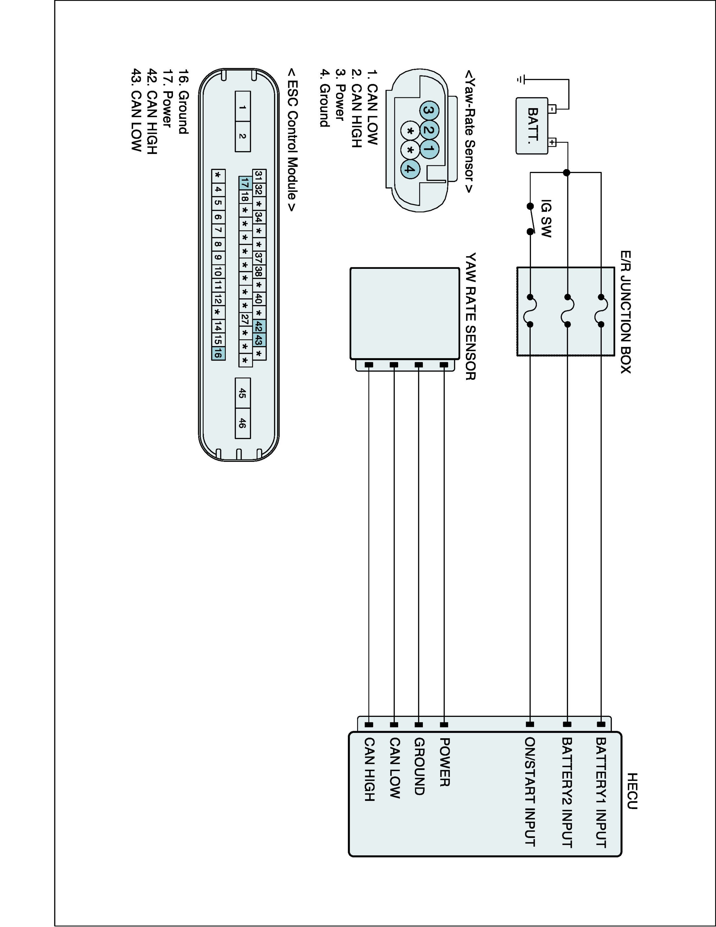 A failure is detected if the Yaw rate & lateral G sensor's message was not received or HECU detects CAN Bus off state for more than the specified failure detection time.